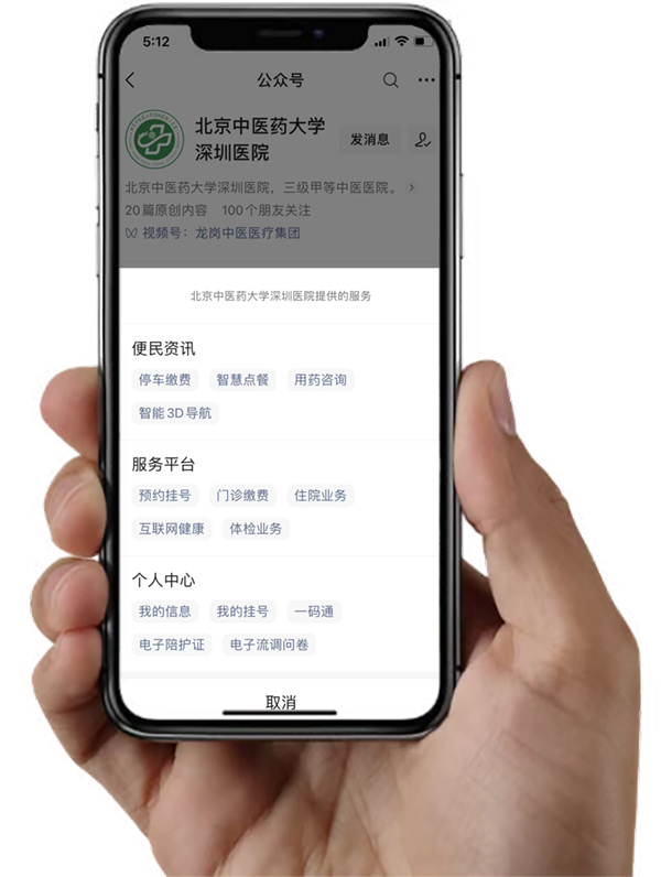 1 患者就医实现‘一部手机走天下’,建立一站式就诊全流程服务,患者在医院微信公众号或者多功能自助机可实现预约、挂号、缴费、报告查询与打印、互联网诊疗、中医健康管理等全自助服务;