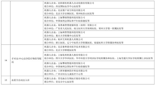医疗领域机器人应用优秀场景公示名单
