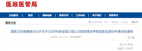 2020年度全国三级公立医院绩效考核国家监测分析情况发布