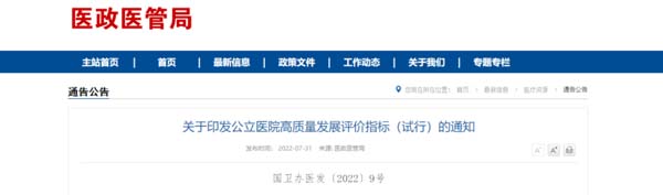 为进一步推动公立医院高质量发展,按照《国务院办公厅关于推动公立医院高质量发展的意见》(国办发〔2021〕18号,以下简称《意见》)要求,我们研究制定了《公立医院高质量发展评价指标(试行)》和《公立中医医院高质量发展评价指标(试行)》(以下统称《评价指标》),供地方按照属地原则对辖区内公立医院高质量发展情况进行评价。现印发给你们,并就有关事项通知如下。
