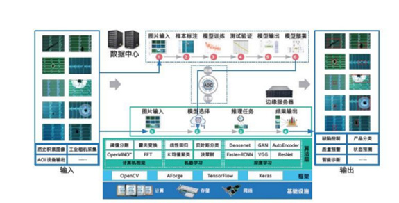 曾经为了解决这个问题,企业需要培训和安排大量检测工程师来确保产品质量。但现在可以借助英特尔边缘计算的能力,通过研发基于深度学习方法的自动化缺陷分类 (Automated Defect Classification, ADC) 系统,来提升缺陷检测效率。在新的AI缺陷检测系统中,历史积累的图像以及由自动光学检测 (Automated Optical Inspection,AOI) 等设备采集的图像,都会由边缘服务器预处理后汇入数据中心,并使用ResNet、Faster-RCNN等图像检测和分类算法进行训练,输出的模型会被部署到边缘服务器中。新AI缺陷检测系统上线部署后,可大幅提升检测准确率并降低人力成本,真正实现降本增效。