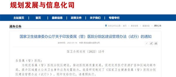 《国家卫生健康委属(管)医院分院区建设管理办法(试行)》印发