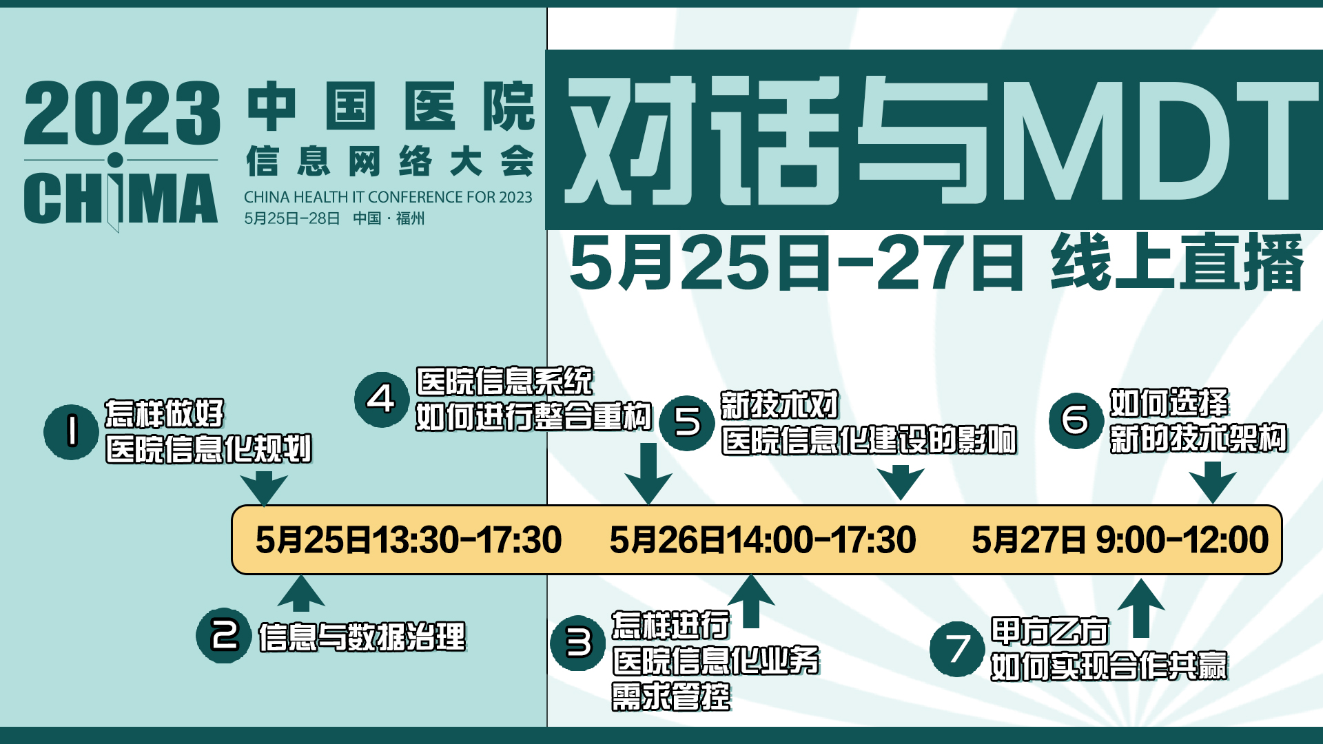 美彩国际 2023大会在大厅路演区设置了7场对话与MDT环节,分别是:怎样做好医院信息化规划、信息与数据治理、怎样进行医院信息化业务需求管控、医院信息系统如何进行整合重构、新技术对医院信息化建设的影响、如何选择新的技术架构、甲方乙方如何实现合作共赢,邀请业内大咖,围绕上述业内热点话题进行头脑风暴,把脉行业现状,共谋未来可持续发展之路。