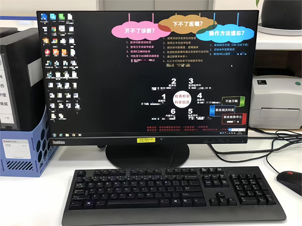 这张照片是一张医院科室护士工作站的电脑桌面,出于保护隐私的原则,我对桌面上涉及个人姓名和联系方式的部分进行了处理。