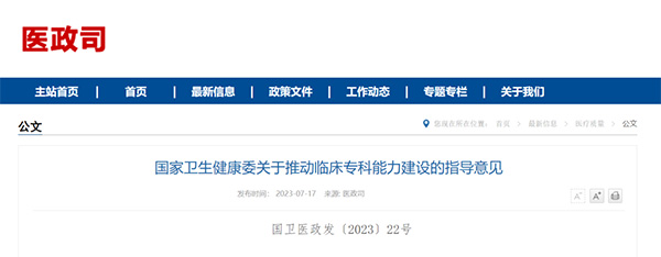 相关链接:《国家卫生健康委关于推动临床专科能力建设的指导意见》解读