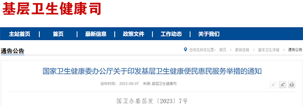 国家卫生健康委发布基层卫生健康便民惠民服务举措