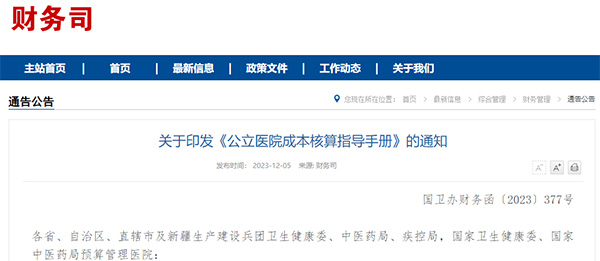 为指导公立医院认真执行《事业单位成本核算基本指引》(财会〔2019〕5号)、《事业单位成本核算具体指引—公立医院》(财会〔2021〕26号)、《公立医院成本核算规范》(国卫财务发〔2021〕4号),加强相关政策规定的衔接统一,推动成本核算工作深入开展,我们研究制定了《公立医院成本核算指导手册》(见附件1),现印发给你们,供各地各医院参照使用。现将有关事项通知如下: