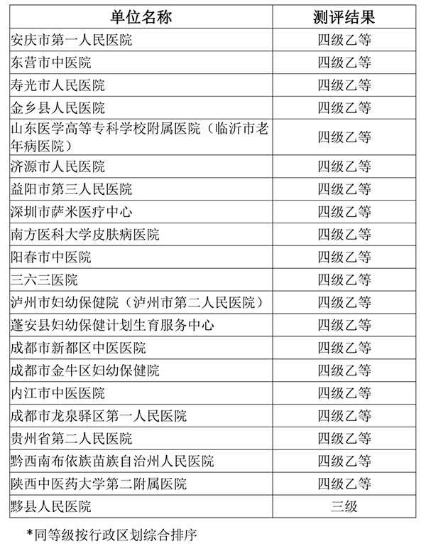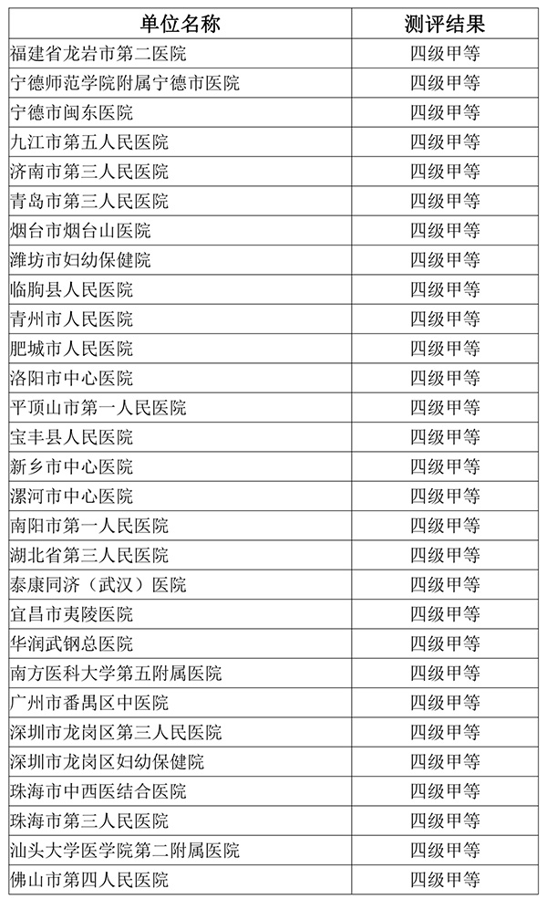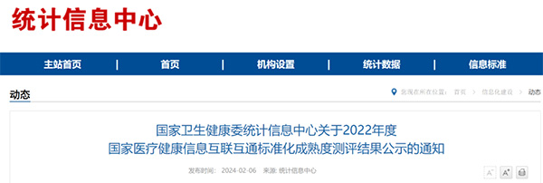 2022年度国家医疗健康信息互联互通标准化成熟度测评结果公示