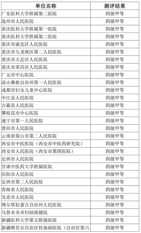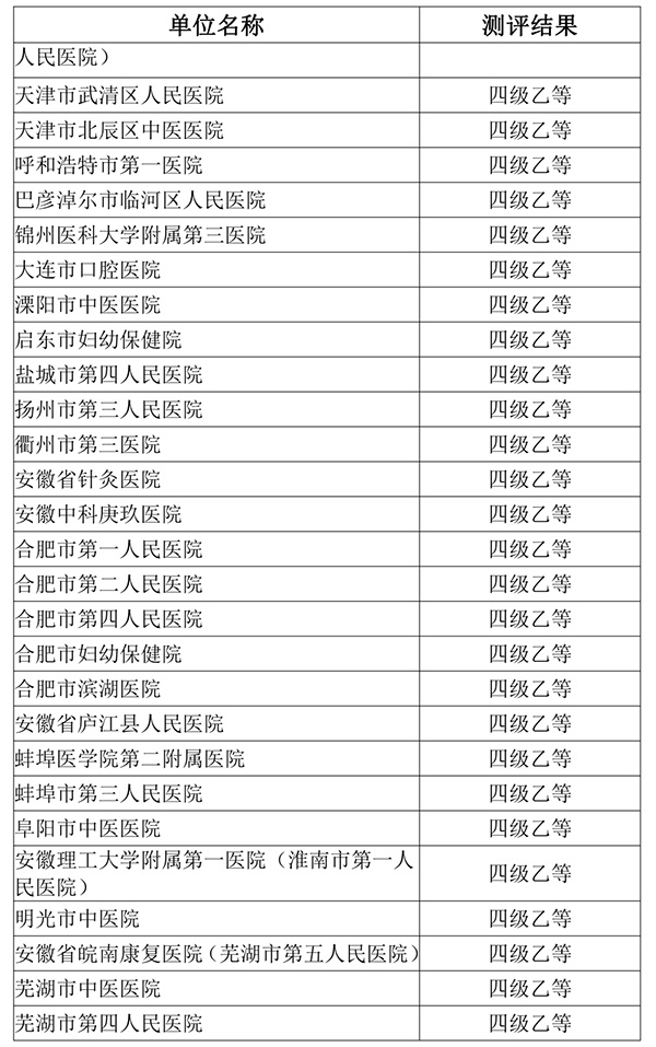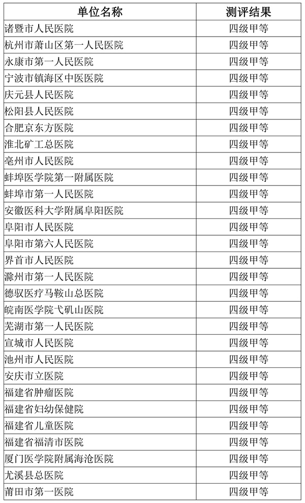 附件:2022年度国家医疗健康信息互联互通标准化成熟度测评结果公示名单