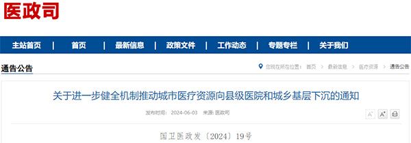 三部门:进一步健全机制推动城市医疗资源向县级医院和城乡基层下沉