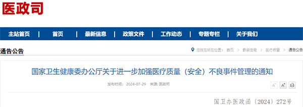 国家卫生健康委:进一步加强医疗质量(安全)不良事件管理