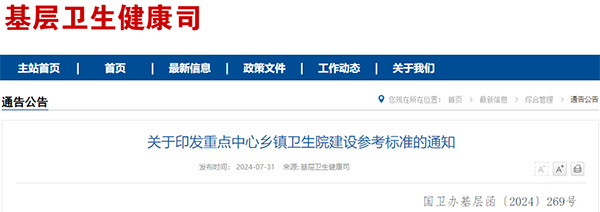 三部门印发《参考标准》,加强重点中心乡镇卫生院建设