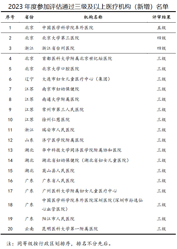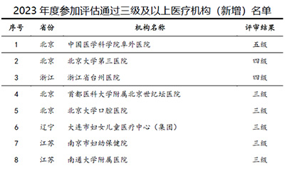 附件:2023年度参加评估通过三级及以上医疗机构(新增)名单