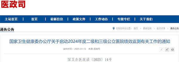 国家卫生健康委启动2024年度二级和三级公立医院绩效监测有关工作