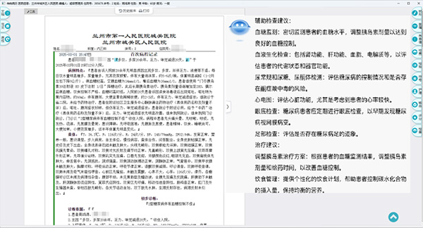 运用智能纠错技术审核医生的病历记录,识别并纠正其中的错误,确保病历的准确性和完整性,从而提高病历的质量;整合影像报告、检验指标等多源数据,构建动态的患者健康档案,提供分级诊断建议(例如针对肿瘤的前三项早期筛查诊断及依据),以减少误诊率;实时监控病历中的用药冲突和检查遗漏情况(如糖尿病患者连续无血糖监测记录),触发预警并将其同步至医务科的管理系统;对电子病历和诊断内容执行全流程的内涵质控,判断其是否遵循医疗规范和质控标准,及时发现并解决潜在问题,以提升医疗服务的整体质量。