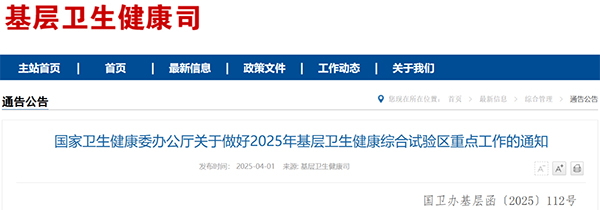 国家卫生健康委办公厅关于做好2025年基层卫生健康综合试验区重点工作的通知