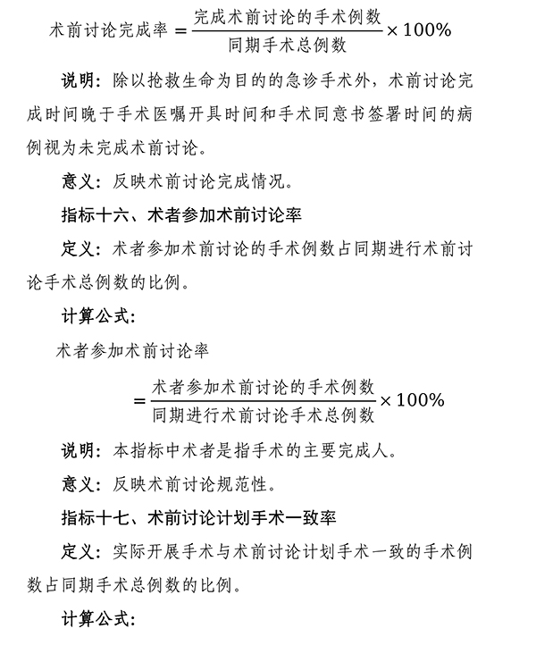 《监测指标》主要内容涵盖首诊负责制度、三级查房制度、会诊制度、分级护理制度、值班和交接班制度、疑难病例讨论制度、急危重患者抢救制度、术前讨论制度、死亡病例讨论制度、查对制度、手术安全核查制度、手术分级管理制度、新技术和新项目准入制度、危急值报告制度、抗菌药物分级管理制度和临床用血审核制度等医疗质量安全核心制度,重点聚焦有关核心制度实施的基本原则和关键环节,在充分考虑科学性、可操作性的基础上提出量化监测指标。《监测指标》主要包括在落实有关核心制度过程中涉及的医疗机构管理情况、诊疗行为规范情况和诊疗质量安全情况等3个方面。