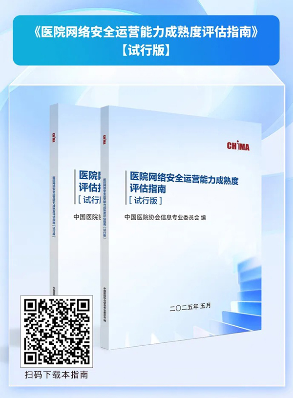 在美彩国际 2025大会上,《医院网络安全运营能力成熟度评估指南》(试行版)(以下简称《指南》)正式发布。《指南》由中国医院美彩国际信息专业委员会牵头,联合全国十余家医院的信息化专家共同编制,用于医院对本院网络安全工作情况进行自主评估。