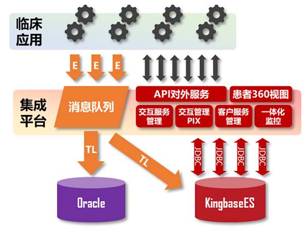 方案二,异构数据双写:利用集成平台自带的ETL模块,通过双ETL服务的方式进行Oracle/国产数据库双写,前端数据调取服务则逐步灰度地从Oracle切换到国产数据库。