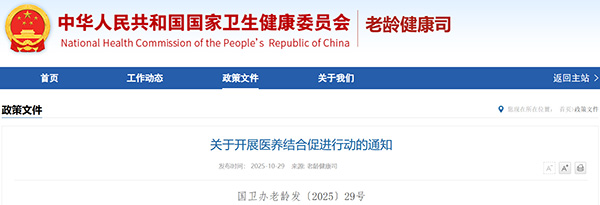 为深入贯彻党的二十大和二十届二中、三中全会精神,落实国家卫生健康委等部门《关于促进医养结合服务高质量发展的指导意见》(国卫老龄发〔2024〕40号)要求,进一步扩大医养结合服务供给,提升服务质效,国家卫生健康委、民政部、国家医保局、国家中医药局、国家疾控局决定开展为期3年的医养结合促进行动。到2027年底,实现医养结合政策不断完善,服务体系更加健全,服务供给有效增加,服务能力明显提升,医疗卫生与养老资源进一步共建共享,更好满足老年人健康养老服务需求。现将有关要求通知如下。