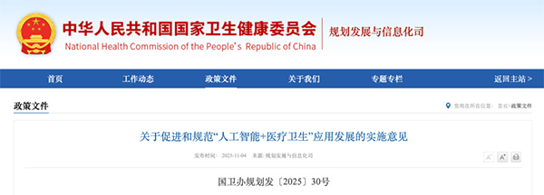 为贯彻落实国务院《关于深入实施“人工智能+”行动的意见》(国发〔2025〕11号),以新一代人工智能深度赋能卫生健康行业高质量发展,现就促进和规范“人工智能+医疗卫生”应用发展提出如下实施意见。