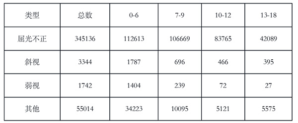 笔者基于2018‑2023年共405,236条小儿眼科数据,研究0-18岁患儿近视眼的发病、治疗与转归情况。数据包括诊断、检查(电脑验光、眼轴等)、治疗(药物、角膜塑形镜、功能镜片、视功能训练等)及随访信息。结果发现: