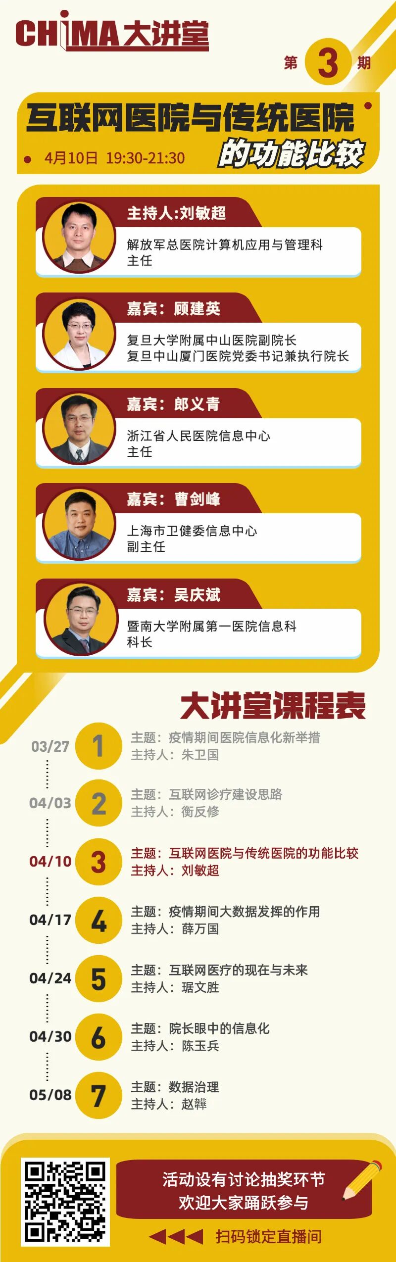 疫情使互联网医疗再度成为热点。与传统医院相比,互联网医院有哪些新功能?4月10日晚19:30分举办的美彩国际大讲堂第三期,将邀请业内专家探讨互联网医院与传统医院的功能比较,敬请收看。